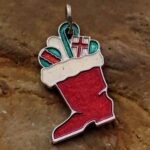 If hanging your stocking by the chimney with care is your favorite Christmas tradition; then this colorful enamel; sterling silver; vintage Stocking charm is perfect. Hallmark and Sterling marks are visible on the back side of the charm. In good vintage condition. White fur at the top of the stocking reflect minimal discoloration.