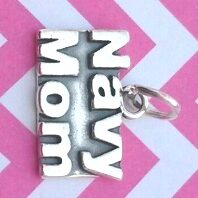 Show your Navy pride with this awesome sterling silver Navy Mom charm! Wear it on a necklace; bracelet or bangle and let the world know of your child's service. Approximately 3/4 inch wide with 2D qualities.