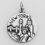 This sterling silver New York City Charm features all the iconic landmarks which make NYC great! On the reverse side, the city’s nickname, The Big Apple and an Apple, what more can you say? Approximately 1/2″ wide.