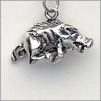 Sterling Silver Razorback charm with 3D qualities; approx 3/4 inch long.
