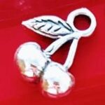 Sterling Silver Cherries with Stem Charm with 3D qualities; approx 5/8 inch tall.