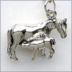Sterling silver Horse with Colt charm with 3D qualities and approximately 3/4 inch wide. This wonderful charm is an excellent addition to your charm bracelet, bangle or necklace.
