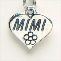 Sterling silver Mimi Heart charm with 2D qualities. Approximately 5/8 inch wide.