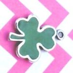 Sterling silver Shamrock Charm with green enamel with 2D qualities. Approximately 5/8 inch wide.