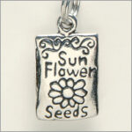 Sterling silver charm with 3D qualities. Approximately 1/2 inch long.Flower – Sunflower Seed Packet