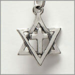 Sterling silver charm with 2D qualities. Approximately 1/2 inch wide.Star of David with Cross