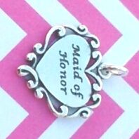 Sterling silver Heart Charm with 'Maid of Honor' inscribed on it. Approx 5/8 inch wide with 2D qualities.