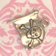 Sterling silver Pirate Flag charm with 2D qualities. Approximatley 1/2 inch wide.All charms have a complimentary sterling silver split ring for attachment.  If you prefer to take your charms to a jeweler and have your charms soldered; please let us k