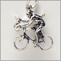 Sterling silver charm with 3D qualities. Approximatly 3/4 inch wide.Cyclist Female