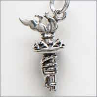 Sterling silver Torch charm with 3D qualities. Approximately 7/8 inch high.