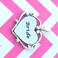 Sterling silver Heart Charm with ‘Bride’ inscribed on it. Approx 5/8 inch wide with 2D qualities.