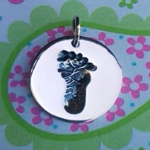 Look at the amazing detail on this Baby Footprint sterling silver disk charm! You’ll melt any Mom’s heart with this super cute charm! Approximately 5/8 inch wide.