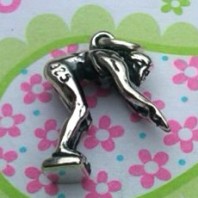 Ready; set; go! This sterling silver; swimmer going off the starting block shows your swimmer in action. Approximately 5/8 inch long.Swimmer on Block