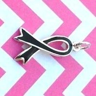 Sterling silver Awareness Ribbon Charm with black enamel represents various causes including melanoma; POW/MIA; and anti-gang. Approx 3/4 long with 2D qualities.