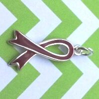 Sterling silver Awareness Charm with red enamel represents various causes; most notably AIDS and heart disease. Approx 3/4 long with 2D qualities.