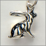 Sterling Silver Sitting Rabbit Charm with 3D qualities; approx 5/8 inch tall.