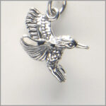 Sterling Silver Hummingbird charm with 2D qualities; approx 5/8 inch long. Flat back.