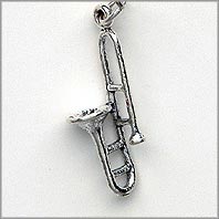 Sterling Silver Trombone charm with 3D qualities; approx 3/4 inch tall.