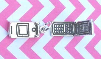 Sterling Silver with 3D qualities; flips closed; approx 5/8 inch tallPhone – Cell Flip Phone mvbl