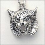 Sterling Silver Bobcat Head Charm with 2D qualities (open back); approx 1/2 inch tall.