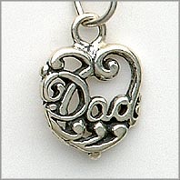 Sterling Silver with 2D qualities; flat back; approx 1/2 inch tallHeart – Dad