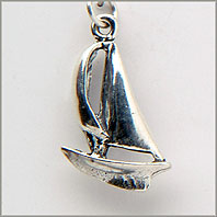 Sterling Silver Sailboat Charm; medium size with 3D qualities; approx 5/8 inch tall.All charms have a complimentary sterling silver split ring for attachment.  If you prefer to have your charms soldered; please let us know that you will need a solder