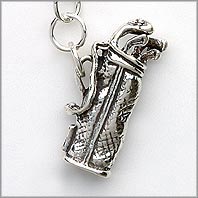 Sterling Silver Golf Bag with Clubs Charm with 3D qualities; approx 7/8 inch tall.All charms have a complimentary sterling silver split ring for attachment.  If you prefer to have your charms soldered; please let us know that you will need a solder r