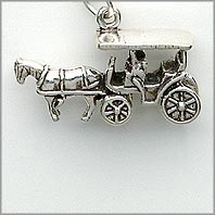 Sterling Silver Horse Drawn Carriage with 3D qualities; approx 1 inch long.