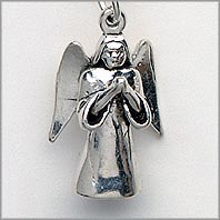 Sterling Silver Praying Angel charm with 3D qualities; approx 3/4 inch tall.All charms have a complimentary sterling silver split ring for attachment.  If you prefer to have your charms soldered; please let us know that you will need a solder ring in
