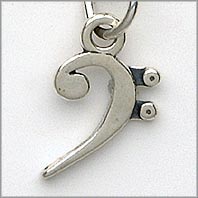 Sterling Silver Bass Clef charm with 3D qualities; approx 1/2 inch tall.