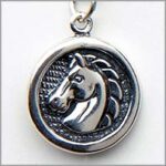 Sterling Silver Horse Medallion charm with 2D qualities. Approximately 5/8 inch in diameter.